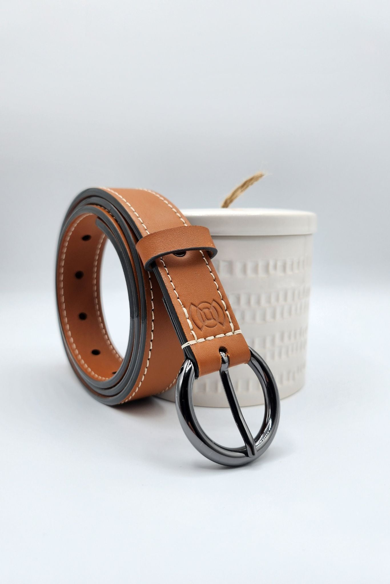 Une ceinture en cuir souple pour femme élégante.