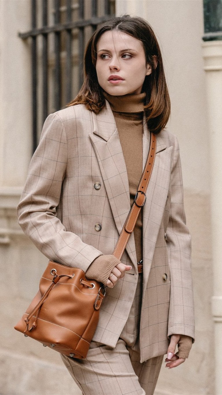 Tommy the women's leather bucket bag features timeless camel leather for a shape and style that is both elegant and refined.