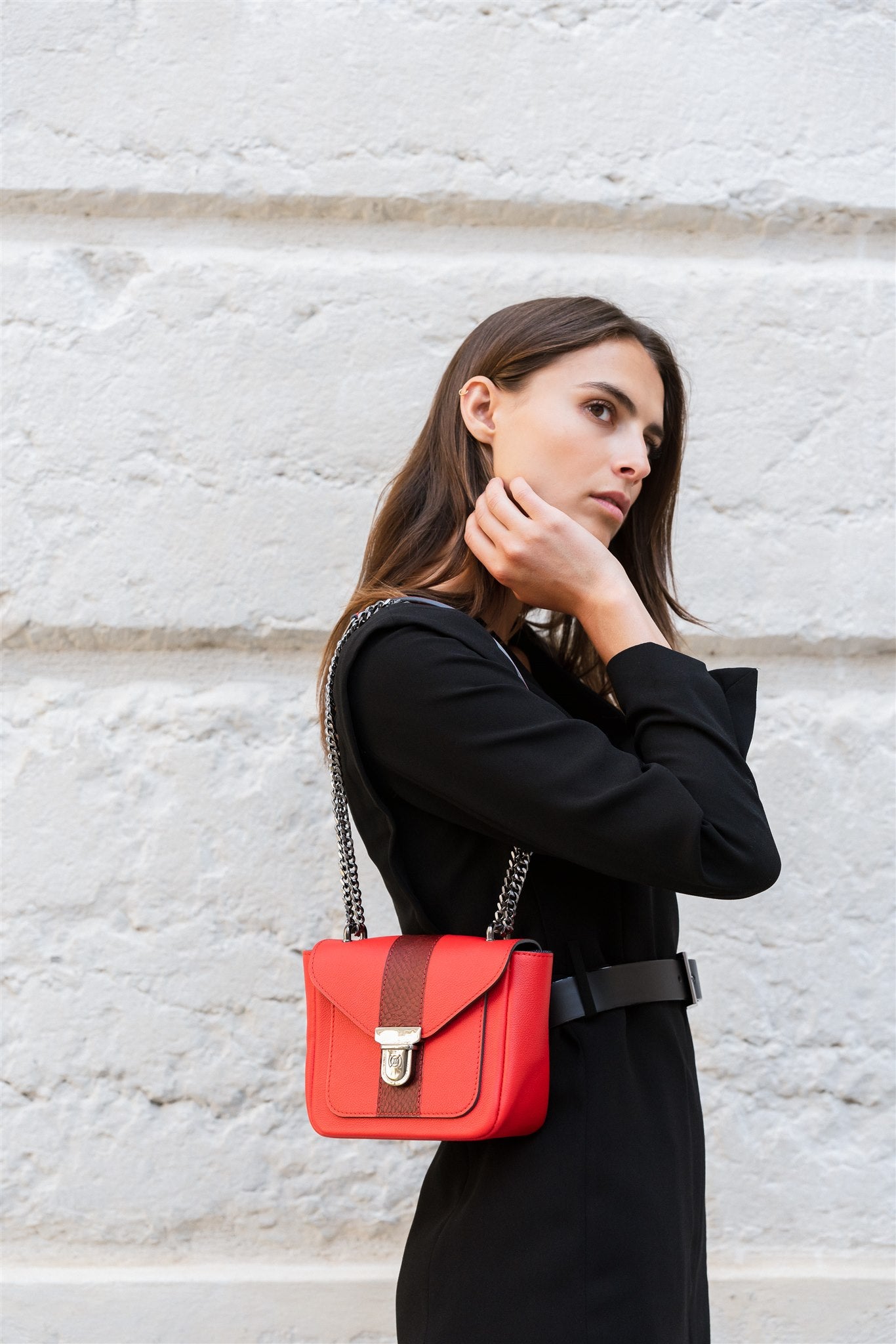 Isaac: Stand out from the crowd with this colorful red bag! Dare to embrace this trendy style and French audacity, and dress with power and originality! Enhance a uniquely stylish shoulder bag with its genuine fish leather, an eco-friendly alternative to exotic leather.