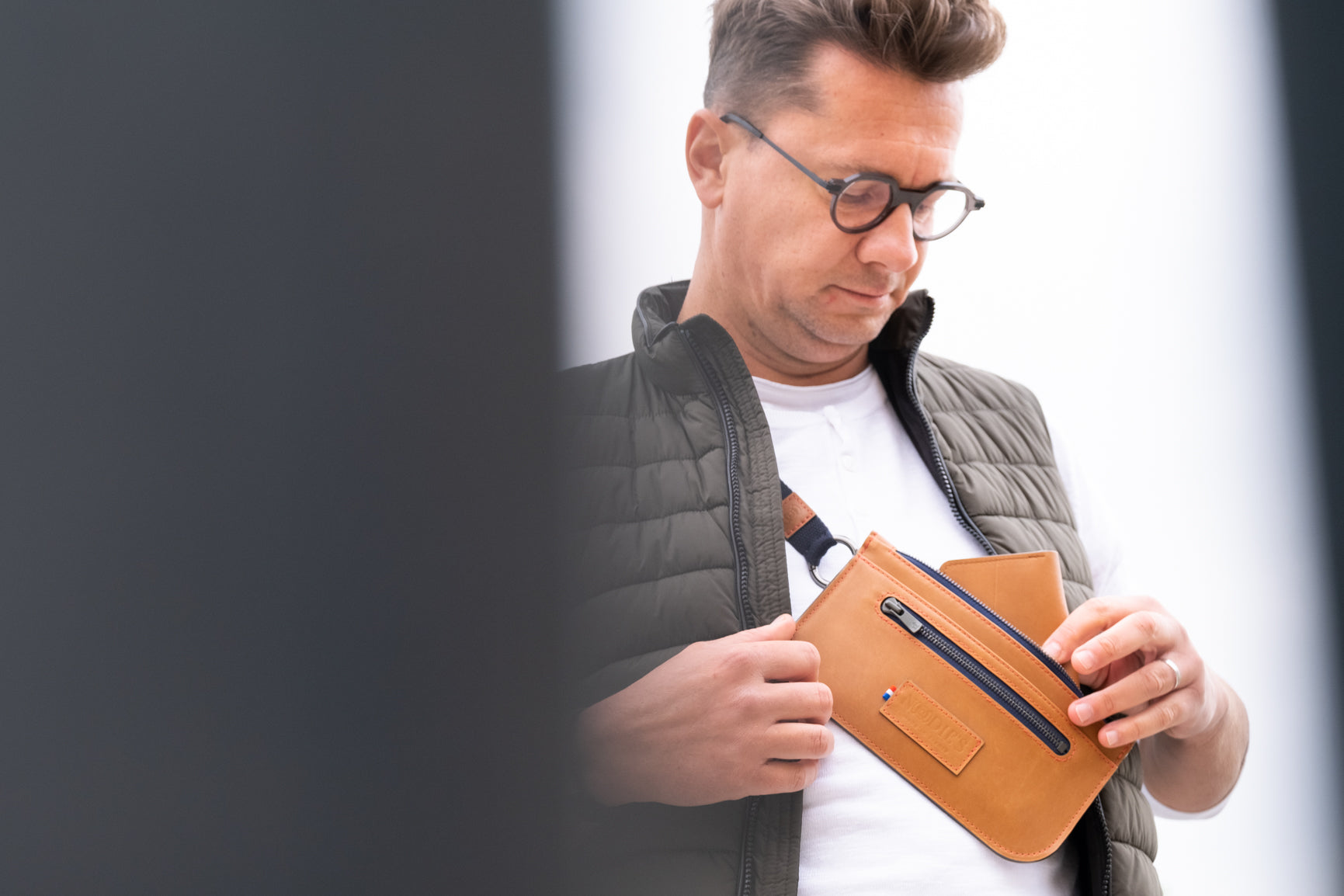Madenn will be your travel companion in all circumstances! Its elegant shape and high-quality leather make it a durable and timeless men's fanny pack. What's more, it comes at an affordable and responsible price! You'll never have to worry about your belongings again; Madenn will be with you through the good (and the bad!) times.