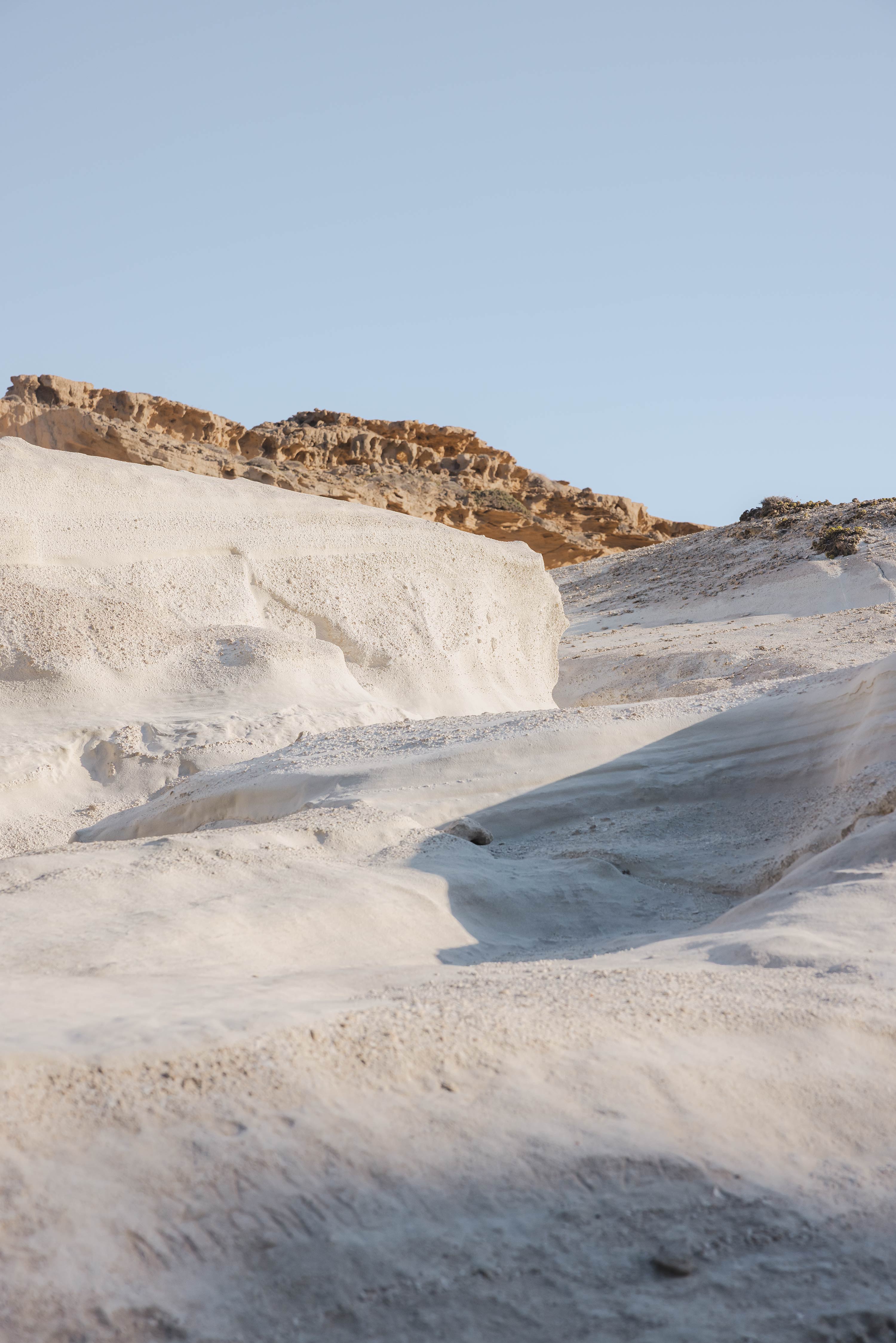 Un décor lunaire, balayé par le vent, où la roche blanche capte chaque nuance du ciel.