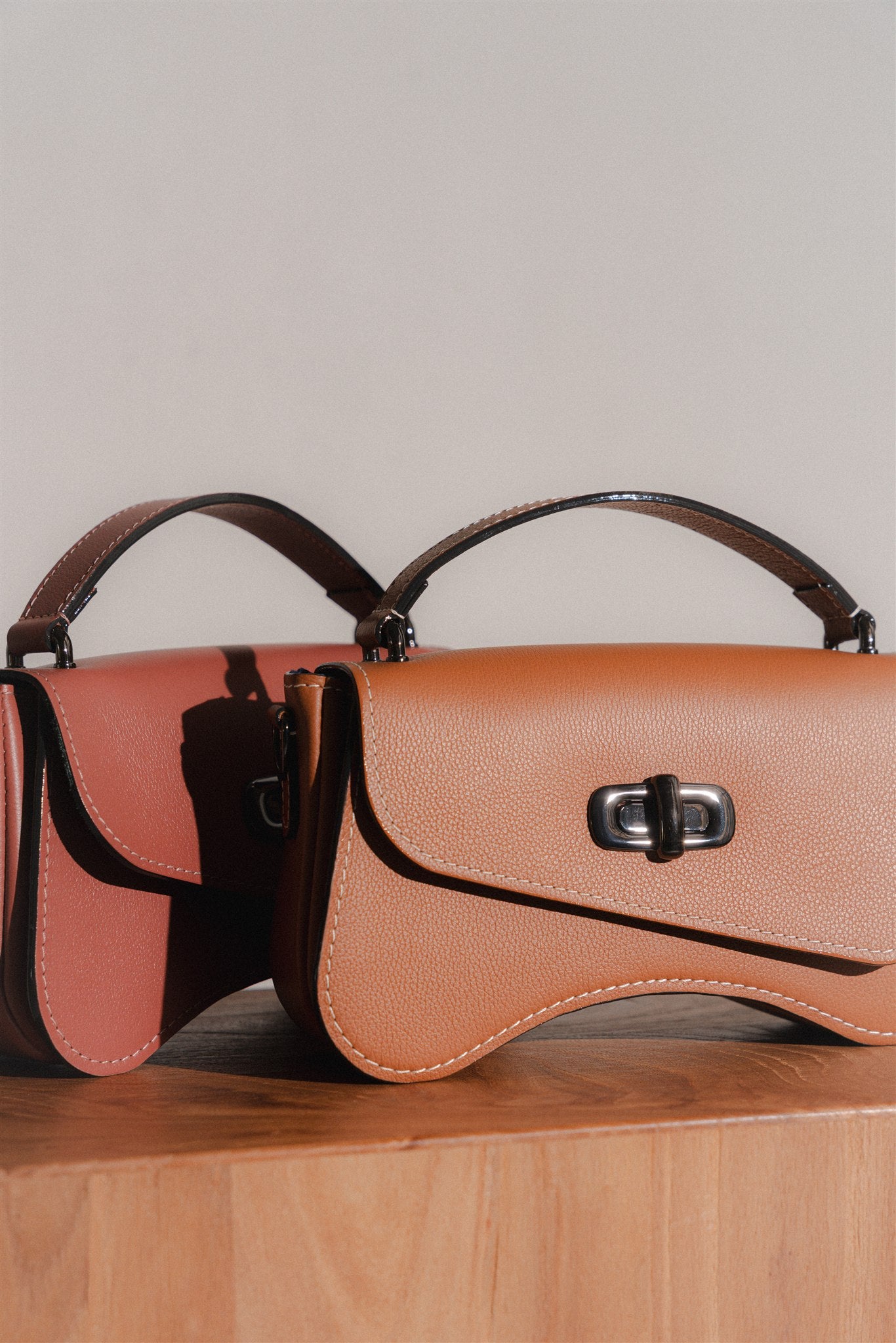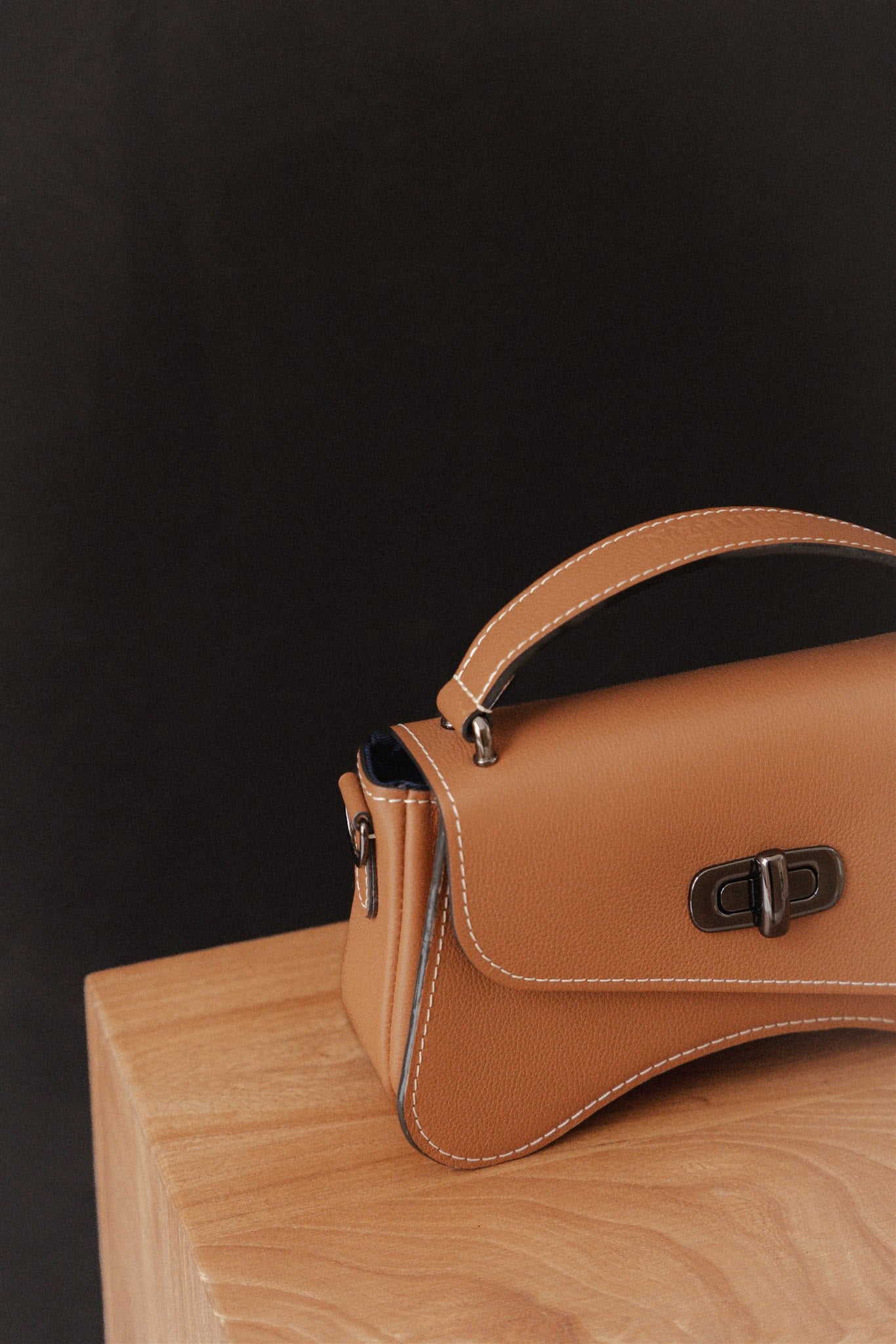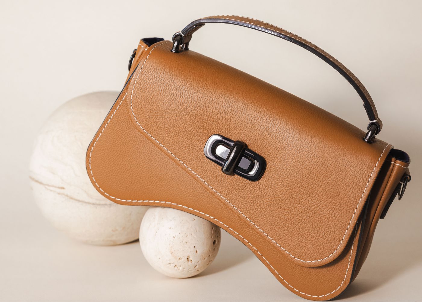 Ce sac baguette est un mélange d'asymétries et de courbes.